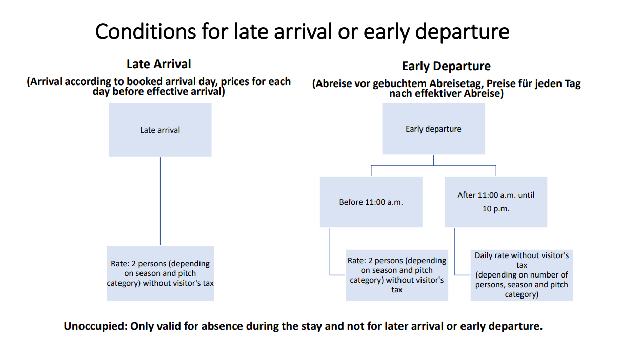If a specific pitch or bungalow number is desired, it can be requested at the time of booking for an additional fee of CHF 35. This request is subject to availability and will be granted upon confirmation.